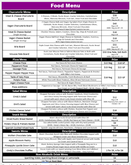 Our Menus